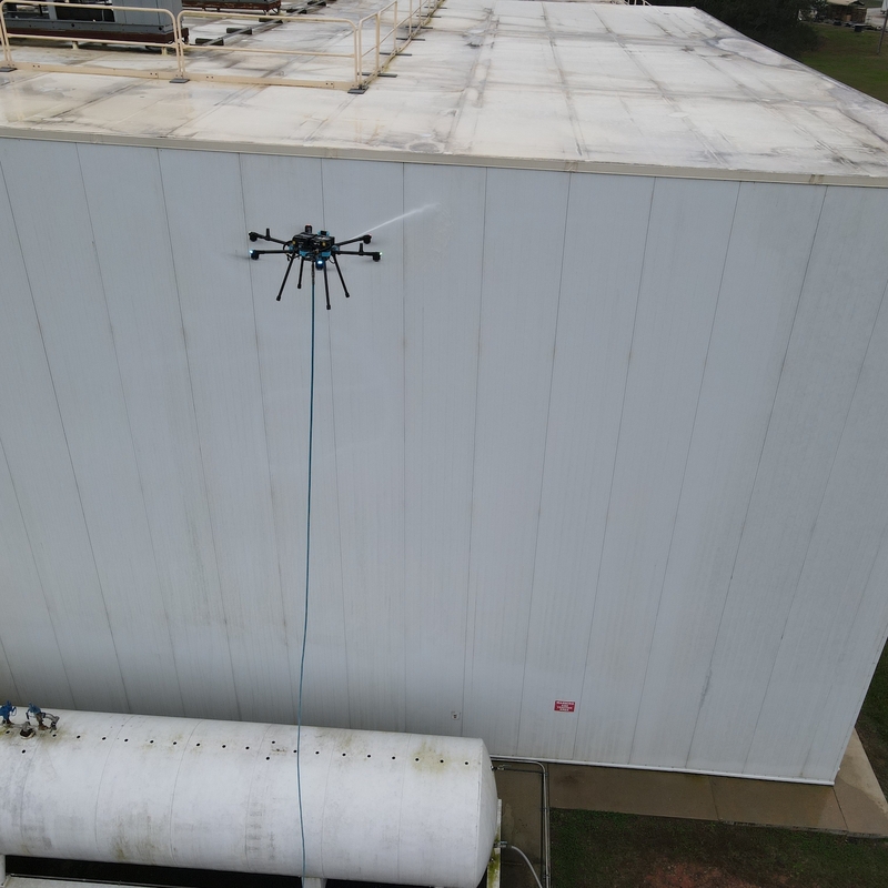 Mit unserer spezialisierten Reinigungsdrohne entfernen wir Verschmutzungen gezielt und materialschonend – selbst an schwer zugänglichen Stellen.